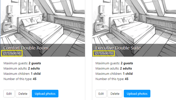 Create as many room types as you have for the property in Booking.com, and insert the room ID. Other codes are not required for the GIATA DRIVE - Booking.com connectivity, but are recommended for easy integration to other channels.